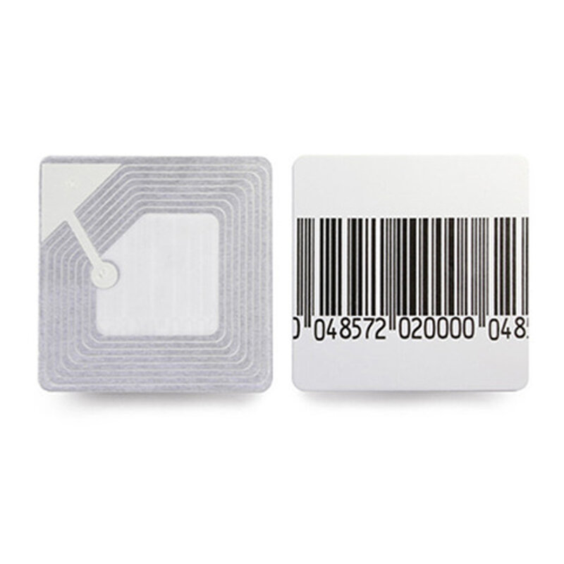 • Dimensioni: 4 x 4 cm, frequenza di 8.2 MHz, con codice a barre fittizio.